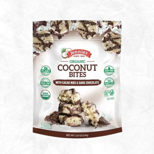 Jennies Organic Coconut Bites with Cacao Nibs and Dark Chocolate